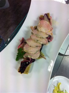 Lonzino al punto rosa, carciofi al timo e radicchio in agrodolce Chef Giovanni Tucci